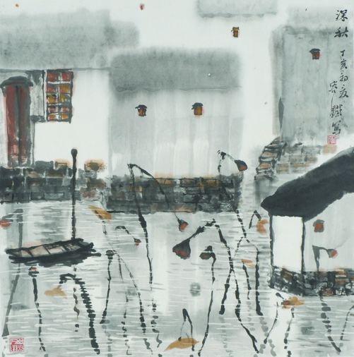 容铁国画作品《周庄人家》