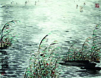 容铁国画作品《清风徐来》