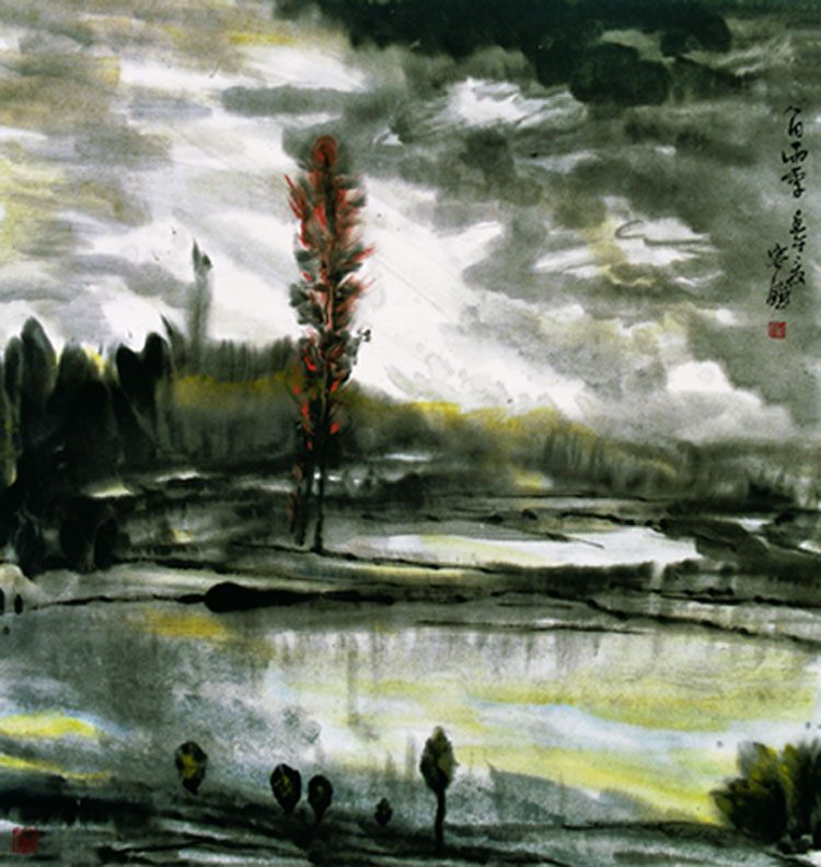 容铁国画作品《八月雨季》
