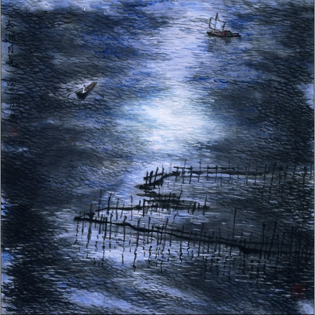 容铁国画作品《太湖月色》