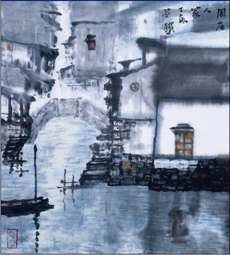 容铁国画作品《周庄人家》