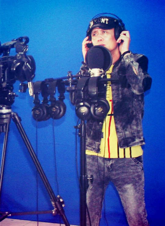 刘牧在认真录制《你是我爱的唯一》录音现场